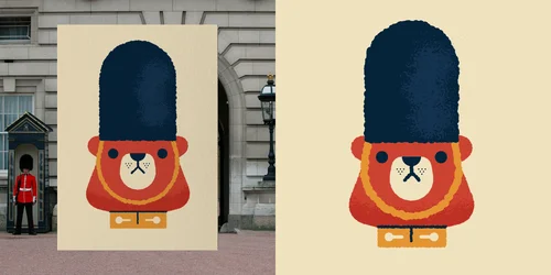 I designed a set of six postcards to playfully explore some of these themes; from dashing foxy nobles and protective bear guards to the regal lion of the royal crest. ’Cry god for St George, Harry and England’!